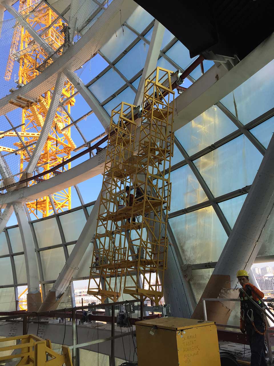 Bina üzerinde çevresinde bulunan ışıklık ve tonozların temizliği için kullanılmaktadır. Bina şartlarına göre tasarımları farklılık gösterir. Boru ray üzerinde hareket eden tipleri olduğu gibi “I” profil üzerinde de hareket eden tipleri vardır.