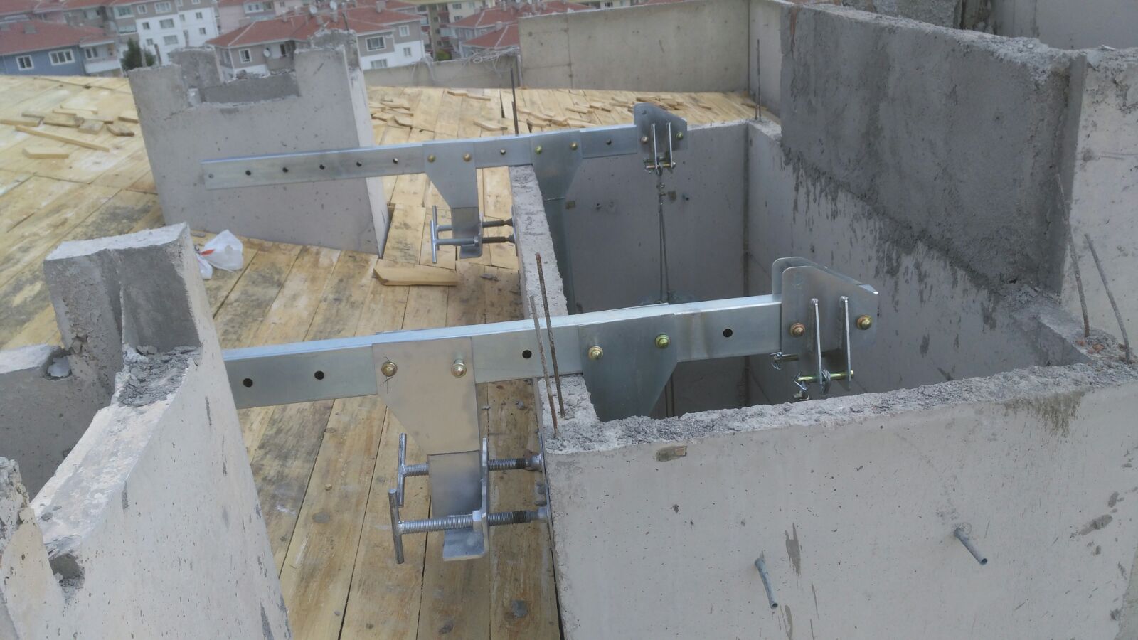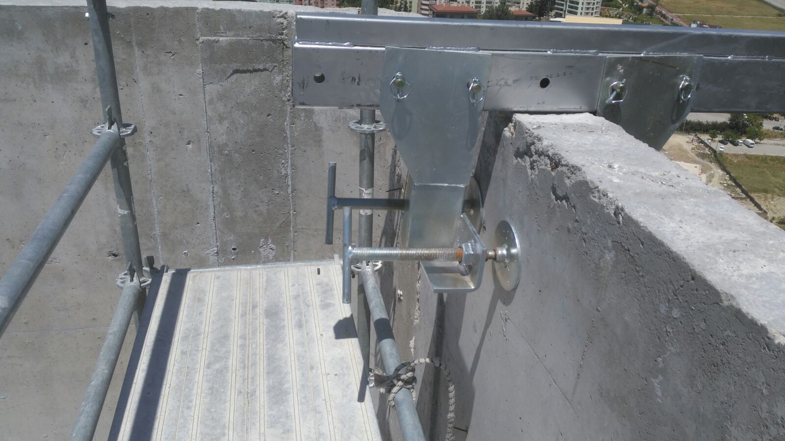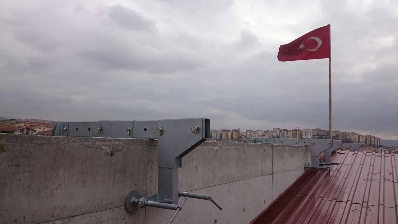 İşkence sistemi bina parapetinin yük taşıma kapasitesine sahip olduğu durumlarda kullanılır. Parapetten 0.5 m ile 1 m mesafedeki cephelere ulaşmak için uygundur.Çelik malzemeden üretilmekte olup elektro galvanizli olarak üretim yapılmaktadır.