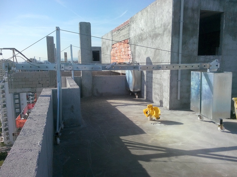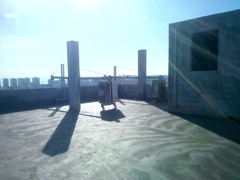 Terrace elevation is the balance weight system used in buildings with flat and sufficient space. It is suitable to reach the façades within 0.5 m to 1.5 m distance from the parapet. Each balance weight is 400 kg and a total of 800 kg balance weight is used. Sand used to balance weight.